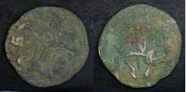 | Description / विवरण | Descrpn./Obv Recumbent bull facing left, wearing jhula (saddle cloth), with trisula (trident) symbol on rump. Above, legend in Sarada script Sri Samantadeva . Descrpn./Rev Rider with lance on caparisoned horse facing right. On left, Sarada letter bhi and on right, Sarada letter ta |