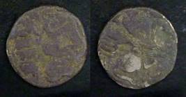 | Description / विवरण | Descrpn./Obv Recumbent bull facing left, wearing jhula (saddle cloth), with trisula (trident) symbol on rump. Above, legend in Sarada script Sri Samantadeva . Descrpn./Rev Rider with lance on caparisoned horse facing right. On left, Sarada letter bhi and on right, Sarada letter ta |