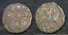 | Description / विवरण | Descrpn./Obv Recumbent bull facing left, wearing jhula (saddle cloth), with trisula (trident) symbol on rump. Above, legend in Sarada script Sri Samantadeva . Descrpn./Rev Rider with lance on caparisoned horse facing right. On left, Sarada letter bhi and on right, Sarada letter ta |