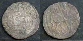 | Description / विवरण | Descrpn./Obv Recumbent bull facing left, wearing jhula (saddle cloth), with trisula (trident) symbol on rump. Above, legend in Sarada script Sri Samantadeva . Descrpn./Rev Rider with lance on caparisoned horse facing right. On left, Sarada letter bhi and on right, Sarada letter ta |