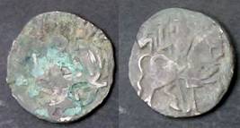 | Description / विवरण | Descrpn./Obv Recumbent bull facing left, wearing jhula (saddle cloth), with trisula (trident) symbol on rump. Above, legend in Sarada script Sri Samantadeva . Descrpn./Rev Rider with lance on caparisoned horse facing right. On left, Sarada letter bhi and on right, Sarada letter ta |