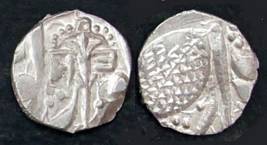 | Description / विवरण | Descrpn./Obv Recumbent bull facing left, wearing jhula (saddle cloth), with trisula (trident) symbol on rump. Above, legend in Sarada script Sri Samantadeva . Descrpn./Rev Rider with lance on caparisoned horse facing right. On left, Sarada letter bhi and on right, Sarada letter ta |