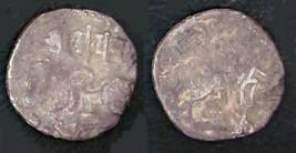 | Description / विवरण | Descrpn./Obv Recumbent bull facing left, wearing jhula (saddle cloth), with trisula (trident) symbol on rump. Above, legend in Sarada script Sri Samantadeva . Descrpn./Rev Rider with lance on caparisoned horse facing right. On left, Sarada letter bhi and on right, Sarada letter ta |