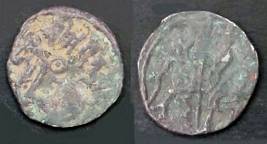 | Description / विवरण | Descrpn./Obv Recumbent bull facing left, wearing jhula (saddle cloth), with trisula (trident) symbol on rump. Above, legend in Sarada script Sri Samantadeva . Descrpn./Rev Rider with lance on caparisoned horse facing right. On left, Sarada letter bhi and on right, Sarada letter ta |