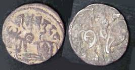| Description / विवरण | Descrpn./Obv Recumbent bull facing left, wearing jhula (saddle cloth), with trisula (trident) symbol on rump. Above, legend in Sarada script Sri Samantadeva . Descrpn./Rev Rider with lance on caparisoned horse facing right. On left, Sarada letter bhi and on right, Sarada letter ta |