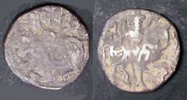 | Description / विवरण | Descrpn./Obv Recumbent bull facing left, wearing jhula (saddle cloth), with trisula (trident) symbol on rump. Above, legend in Sarada script Sri Samantadeva . Descrpn./Rev Rider with lance on caparisoned horse facing right. On left, Sarada letter bhi and on right, Sarada letter ta |