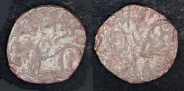 | Description / विवरण | Descrpn./Obv Recumbent bull facing left, wearing jhula (saddle cloth), with trisula (trident) symbol on rump. Above, legend in Sarada script Sri Samantadeva . Descrpn./Rev Rider with lance on caparisoned horse facing right. On left, Sarada letter bhi and on right, Sarada letter ta |