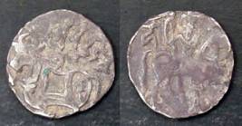 | Description / विवरण | Descrpn./Obv Recumbent bull facing left, wearing jhula (saddle cloth), with trisula (trident) symbol on rump. Above, legend in Sarada script Sri Samantadeva . Descrpn./Rev Rider with lance on caparisoned horse facing right. On left, Sarada letter bhi and on right, Sarada letter ta |