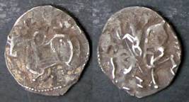 | Description / विवरण | Descrpn./Obv Recumbent bull facing left, wearing jhula (saddle cloth), with trisula (trident) symbol on rump. Above, legend in Sarada script Sri Samantadeva . Descrpn./Rev Rider with lance on caparisoned horse facing right. On left, Sarada letter bhi and on right, Sarada letter ta |