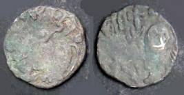 | Description / विवरण | Descrpn./Obv Recumbent bull facing left, wearing jhula (saddle cloth), with trisula (trident) symbol on rump. Above, legend in Sarada script Sri Samantadeva . Descrpn./Rev Rider with lance on caparisoned horse facing right. On left, Sarada letter bhi and on right, Sarada letter ta |