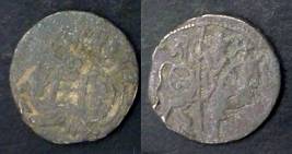 | Description / विवरण | Descrpn./Obv Recumbent bull facing left, wearing jhula (saddle cloth), with trisula (trident) symbol on rump. Above, legend in Sarada script Sri Samantadeva . Descrpn./Rev Rider with lance on caparisoned horse facing right. On left, Sarada letter bhi and on right, Sarada letter ta |