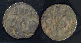 | Description / विवरण | Descrpn./Obv Recumbent bull facing left, wearing jhula (saddle cloth), with trisula (trident) symbol on rump. Above, legend in Sarada script Sri Samantadeva . Descrpn./Rev Rider with lance on caparisoned horse facing right. On left, Sarada letter bhi and on right, Sarada letter ta |