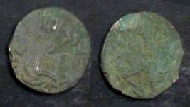 | Description / विवरण | Descrpn./Obv Recumbent bull facing left, wearing jhula (saddle cloth), with trisula (trident) symbol on rump. Above, legend in Sarada script Sri Samantadeva . Descrpn./Rev Rider with lance on caparisoned horse facing right. On left, Sarada letter bhi and on right, Sarada letter ta |