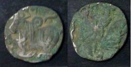 | Description / विवरण | Descrpn./Obv Recumbent bull facing left, wearing jhula (saddle cloth), with trisula (trident) symbol on rump. Above, legend in Sarada script Sri Samantadeva . Descrpn./Rev Rider with lance on caparisoned horse facing right. On left, Sarada letter bhi and on right, Sarada letter ta |