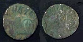 | Description / विवरण | Descrpn./Obv Recumbent bull facing left, wearing jhula (saddle cloth), with trisula (trident) symbol on rump. Above, legend in Sarada script Sri Samantadeva . Descrpn./Rev Rider with lance on caparisoned horse facing right. On left, Sarada letter bhi and on right, Sarada letter ta |