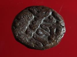 | Description / विवरण | Copper dam fulus of Akbar 962-1014 AH; 1556-1605 AD , from the Agra mint. Obverse, fragments of fulus zarb Agra Dar ul Khilafah. Reverse nuhsad 987 hashtad haft. |