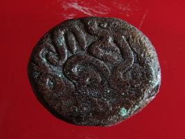 | Description / विवरण | Copper dam fulus of Akbar 962-1014 AH; 1556-1605 AD , from the Agra mint. Obverse, fragments of zarb fulus Agra -. Reverse nuhsad hashtad -. |