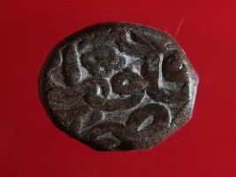 | Description / विवरण | Copper dam fulus of Akbar 962-1014 AH; 1556-1605 AD , from the Agra mint. Obverse, fragments of zarb fulus Agra -. Reverse sanh fi 985 nuhsad hashtad -. |