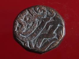 | Description / विवरण | Copper dam fulus of Akbar 962-1014 AH; 1556-1605 AD , from the Ajmer mint. Obverse zarb Ajmer sikkah fulus Reverse 986 nuhsad hashtad |
