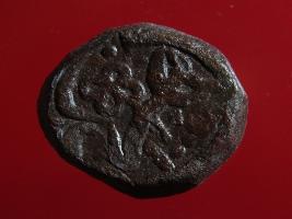 | Provenance / उद्गम/क्षेत्र | Reportedly found in village Satiawala, thana Sadar, Dist. Fzpr, 4 km off the Fzpr-Moga road in the field of Harbans Singh s o Jang Singh while excavating earth for making bricks. Sent by DC SSP Fzpr to the dept and entered in its registers on 30 03 2003. Part of a large hoard of 3070 coins all copper |