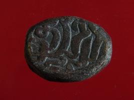 | Description / विवरण | Copper dam fulus of Akbar 962-1014 AH; 1556-1605 AD , from the Ajmer mint. Obverse, fragments of zarb Ajmer sikkah fulus Reverse, fragments of sanh - 992 nuhsad va navad - with a quatrefoil. |