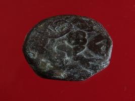 | Description / विवरण | Copper dam fulus of Akbar 962-1014 AH; 1556-1605 AD , from the Ajmer mint. Obverse, fragments of zarb Ajmer sikkah fulus. Reverse, fragments of sanh 970 nuhsad haftad - with a terminal quatrefoil. |