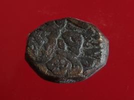 | Description / विवरण | Copper dam fulus of Akbar 962-1014 AH; 1556-1605 AD , from the Ajmer mint. Obverse, fragments of - Ajmer sikkah fulus. Reverse, fragments of 98- nuhsad hashtad - with a quatrefoil. |