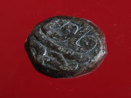 | Description / विवरण | Copper dam fulus of Akbar 962-1014 AH; 1556-1605 AD , from the Ajmer mint. Obverse, fragments of Ajmer sikkah fulus. Reverse, fragments of sanh 993 nuhsad va - with a quatrefoil. |