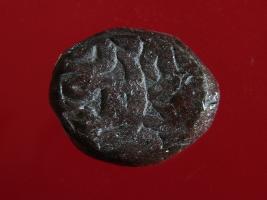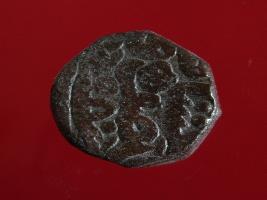 | Description / विवरण | Copper dam fulus of Akbar 962-1014 AH; 1556-1605 AD , from the Ajmer mint. Obverse, fragments of Ajmer sikkah fulus. Reverse, fragments of sanh 980 nuhsad va hashtad - . With a quatrefoil. |