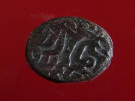 | Description / विवरण | Copper dam fulus of Akbar 962-1014 AH; 1556-1605 AD , from the Ajmer mint. Obverse, fragments of zarb Ajmer sikkah fulus. Reverse, fragments of 996 nuhsad va navad - . With a quatrefoil. |
