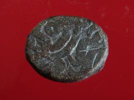 | Description / विवरण | Copper dam fulus of Akbar 962-1014 AH; 1556-1605 AD , from the Ajmer mint. Obverse, fragments of zarb Ajmer sikkah fulus. Reverse, fragments of nuhsad hashtad - . With a quatrefoil. Rest illegible |