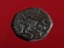 | Description / विवरण | Copper dam fulus of Akbar 962-1014 AH; 1556-1605 AD , from the Ajmer mint. Obverse zarb Ajmer sikkah fulus. Reverse - nuhsad hashtad -. |