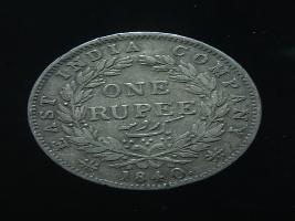 | Description / विवरण | The obverse shows the uncrowned head of the young Victoria facing left, hair done in a pony-tail, with the unbroken legend along the edge. Milled rim, with dotted circle. Obverse legend Victoria Queen. Reverse, in centre, surrounded by floral branches One Rupee yak rupiah in Persian characters . Along the edge, East India Company with the date 1840 at the bottom. Double circle with dots along the edge. |