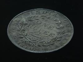 | Description / विवरण | The obverse shows the uncrowned head of the young Victoria facing left, hair done in a pony-tail, with the unbroken legend along the edge. Milled rim, with dotted circle. Obverse legend Victoria Queen. Reverse, in centre, surrounded by floral branches One Rupee yak rupiah in Persian characters . Along the edge, East India Company with the date 1840 at the bottom. Double circle with dots along the edge. |