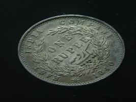| Description / विवरण | The obverse shows the uncrowned head of the young Victoria facing left, hair done in a pony-tail, with the unbroken legend along the edge. Milled rim, with dotted circle. Obverse legend Victoria Queen. Reverse, in centre, surrounded by floral branches One Rupee yak rupiah in Persian characters . Along the edge, East India Company with the date 1840 at the bottom. Double circle with dots along the edge. |
