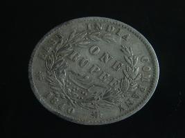| Description / विवरण | The obverse shows the uncrowned head of the young Victoria facing left, hair done in a pony-tail, with the unbroken legend along the edge. Milled rim, with dotted circle. Obverse legend Victoria Queen. Reverse, in centre, surrounded by floral branches One Rupee yak rupiah in Persian characters . Along the edge, East India Company with the date 1840 at the bottom. Double circle with dots along the edge. |