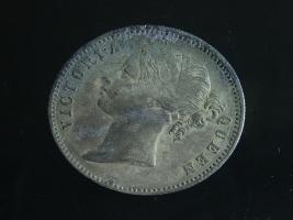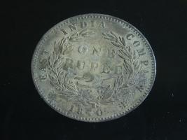 | Description / विवरण | The obverse shows the uncrowned head of the young Victoria facing left, hair done in a pony-tail, with the unbroken legend along the edge. Milled rim, with dotted circle. Obverse legend Victoria Queen. Reverse, in centre, surrounded by floral branches One Rupee yak rupiah in Persian characters . Along the edge, East India Company with the date 1840 at the bottom. Double circle with dots along the edge. |