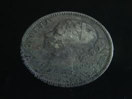 | Description / विवरण | The obverse shows the uncrowned head of the young Victoria facing left, hair done in a pony-tail, with the unbroken legend along the edge. Milled rim, with dotted circle. Obverse legend Victoria Queen. Reverse, in centre, surrounded by floral branches One Rupee yak rupiah in Persian characters . Along the edge, East India Company with the date 1840 at the bottom. Double circle with dots along the edge. |