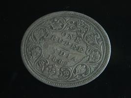| Description / विवरण | The obverse shows the crowned bust of Victoria facing left, with the divided legend along the edge. Milled rim, with dotted circle. Obverse legend Victoria Queen. Reverse, in centre, surrounded by a floral vine One Rupee India 1862. Double circle with dots along the edge. |
