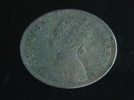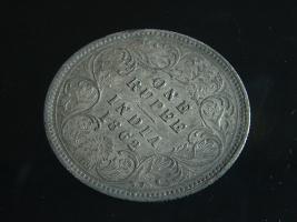 | Description / विवरण | The obverse shows the crowned bust of Victoria facing left, with the divided legend along the edge. Milled rim, with dotted circle. Obverse legend Victoria Queen. Reverse, in centre, surrounded by a floral vine One Rupee India 1862. Double circle with dots along the edge. |