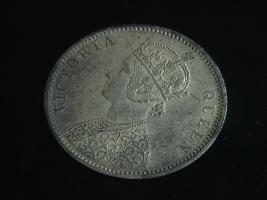 | Description / विवरण | The obverse shows the crowned bust of Victoria facing left, with the divided legend along the edge. Milled rim, with dotted circle. Obverse legend Victoria Queen. Reverse, in centre, surrounded by a floral vine One Rupee India 1862. Double circle with dots along the edge. |
