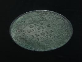 | Description / विवरण | The obverse shows the crowned bust of Victoria facing left, with the divided legend along the edge. Milled rim, with dotted circle. Obverse legend Victoria Empress. Reverse, in centre, surrounded by a floral vine One Rupee India 1879. Double circle with dots along the edge. |