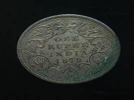 | Description / विवरण | The obverse shows the crowned bust of Victoria facing left, with the divided legend along the edge. Milled rim, with dotted circle. Obverse legend Victoria Empress. Reverse, in centre, surrounded by a floral vine One Rupee India 1879. Double circle with dots along the edge. |