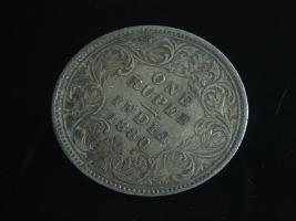 | Description / विवरण | The obverse shows the crowned bust of Victoria facing left, with the divided legend along the edge. Milled rim, with dotted circle. Obverse legend Victoria Empress. Reverse, in centre, surrounded by a floral vine One Rupee India 1880. Double circle with dots along the edge. |