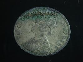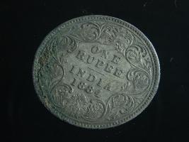 | Description / विवरण | The obverse shows the crowned bust of Victoria facing left, with the divided legend along the edge. Milled rim, with dotted circle. Obverse legend Victoria Empress. Reverse, in centre, surrounded by a floral vine One Rupee India 1884. Double circle with dots along the edge. |