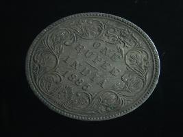 | Description / विवरण | The obverse shows the crowned bust of Victoria facing left, with the divided legend along the edge. Milled rim, with dotted circle. Obverse legend Victoria Empress. Reverse, in centre, surrounded by a floral vine One Rupee India 1885. Double circle with dots along the edge. |