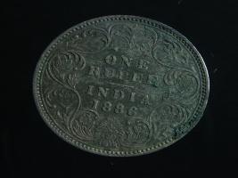 | Description / विवरण | The obverse shows the crowned bust of Victoria facing left, with the divided legend along the edge. Milled rim, with dotted circle. Obverse legend Victoria Empress. Reverse, in centre, surrounded by a floral vine One Rupee India 1886. Double circle with dots along the edge. |