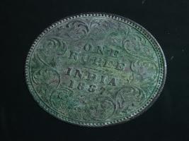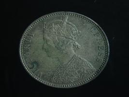 | Description / विवरण | The obverse shows the crowned bust of Victoria facing left, with the divided legend along the edge. Milled rim, with dotted circle. Obverse legend Victoria Empress. Reverse, in centre, surrounded by a floral vine One Rupee India 1887. Double circle with dots along the edge. |