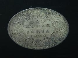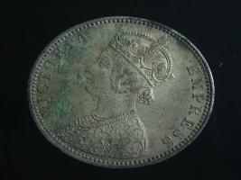 | Description / विवरण | The obverse shows the crowned bust of Victoria facing left, with the divided legend along the edge. Milled rim, with dotted circle. Obverse legend Victoria Empress. Reverse, in centre, surrounded by a floral vine One Rupee India 1888. Double circle with dots along the edge. |