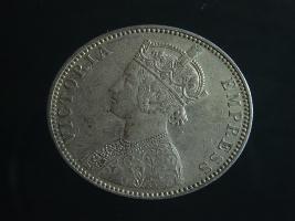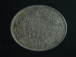 | Description / विवरण | The obverse shows the crowned bust of Victoria facing left, with the divided legend along the edge. Milled rim, with dotted circle. Obverse legend Victoria Empress. Reverse, in centre, surrounded by a floral vine One Rupee India 1889. Double circle with dots along the edge. |